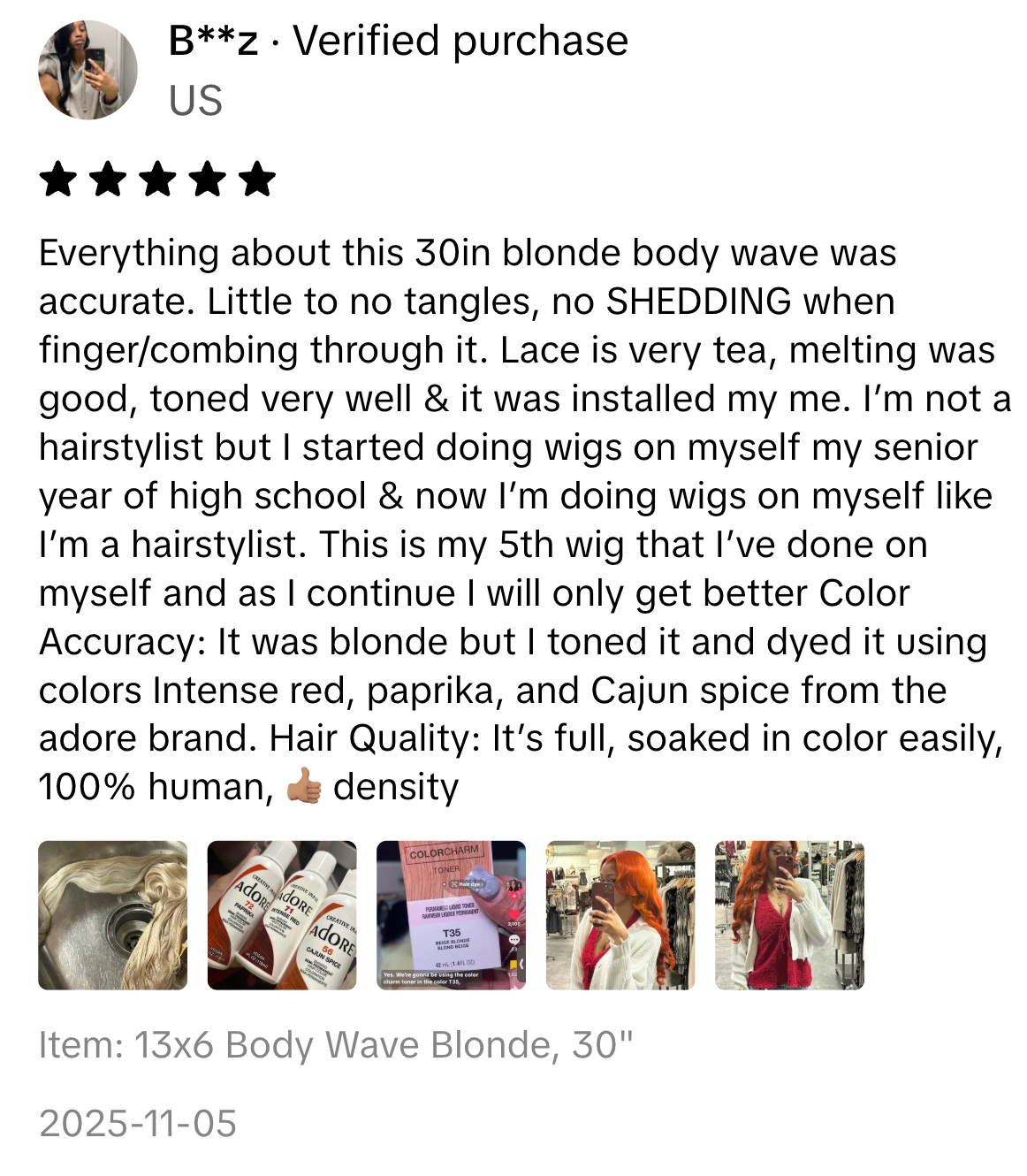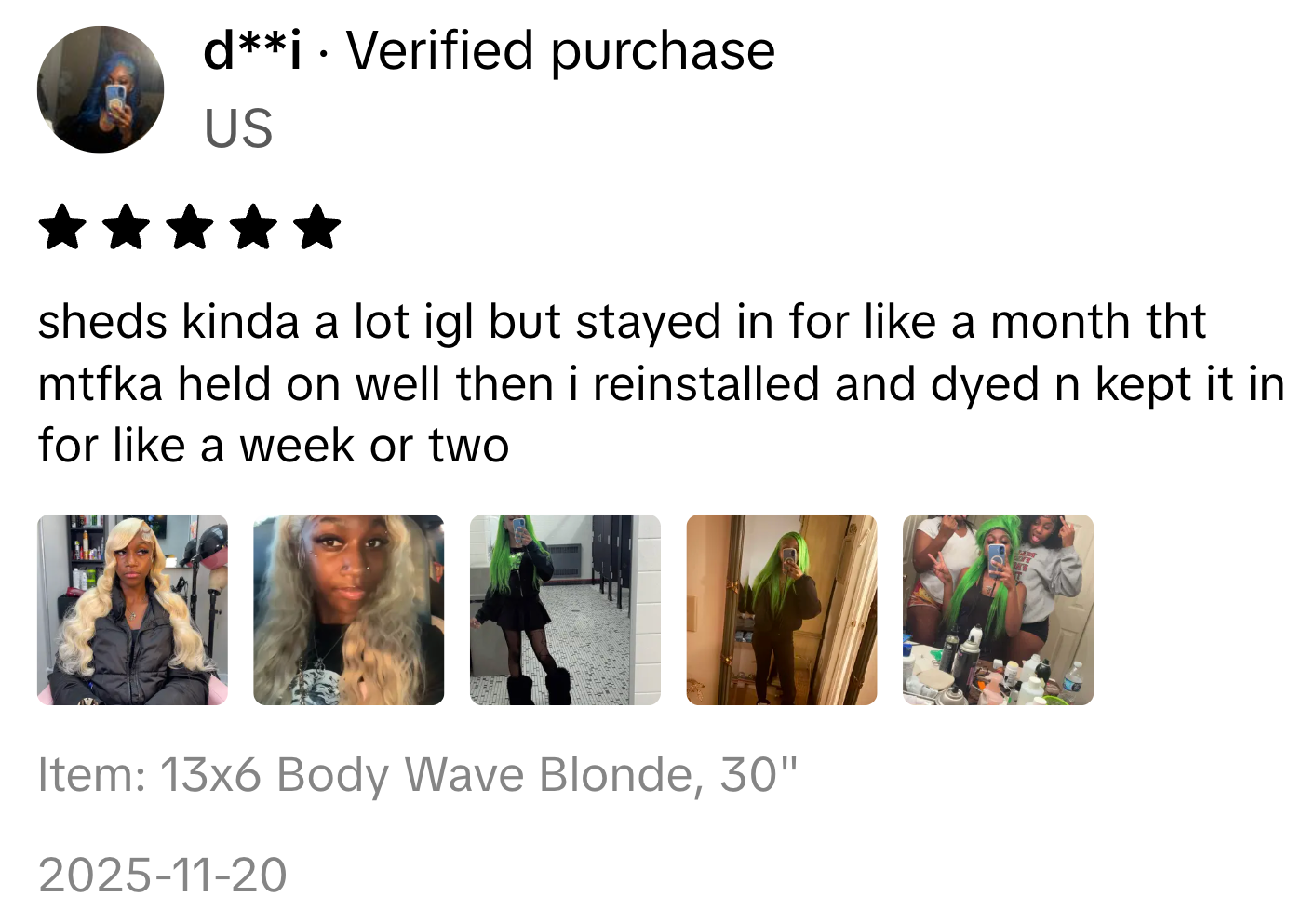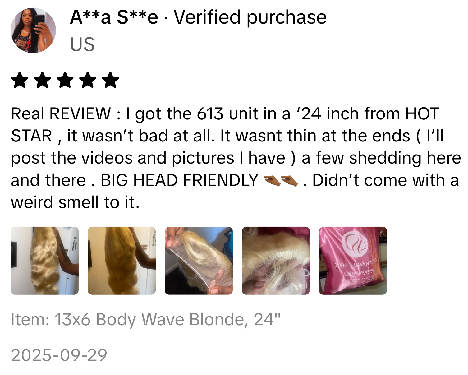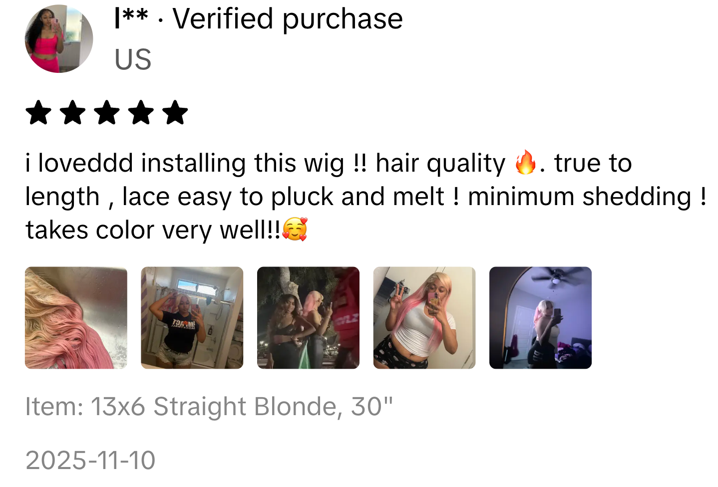 While all platinum blonde (613) hair undergoes processing that can cause minor shedding, our wigs are double-wefted to ensure shedding is kept to an absolute minimum.